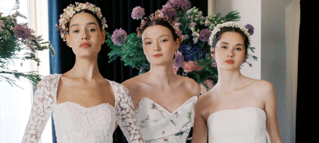 New York Fashion Week Bridal designers provided a fresh spin on the centuries-old marriage tradition. In their hands, the gowns were tweaked and twisted for extra charm. This isn’t your typical meringue number; instead, it’s a modern view of how women want to dress on their wedding day. And we love it. Main Image: Three brides from Sareh Nouri.